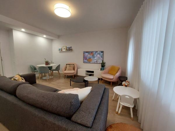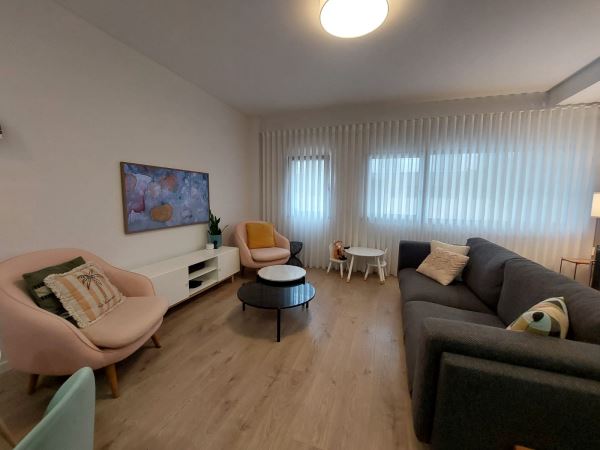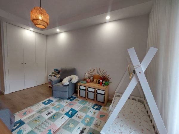 Situado num rés-do-chão alto de um prédio de 2018, o apartamento combina privacidade e conforto, com divisões amplas, acabamentos modernos e uma atmosfera que convida a ficar. A sala espaçosa permite vários espaços sociais, enquanto a cozinha e os quartos ligam-se naturalmente ao exterior, criando um ambiente de convívio e harmonia.